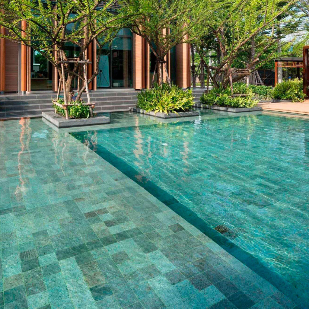 La tonalidad, por otro lado, juega un rol estético y funcional. Los tonos claros generan sensación de amplitud y resaltan la transparencia del agua, mientras que los tonos más profundos aportan un aspecto moderno y elegante. Por último, es importante asegurarse de elegir materiales fáciles de limpiar y mantener, que soporten productos de piscina y no pierdan color con el tiempo.