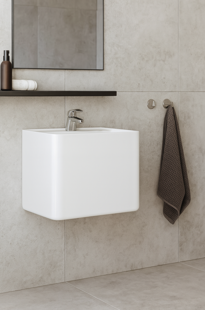 Los lavatorios colgantes o suspendidos se fijan directamente a la pared, dejando la parte inferior libre. Son ideales para baños pequeños, ya que generan sensación de amplitud y permiten aprovechar mejor el espacio.