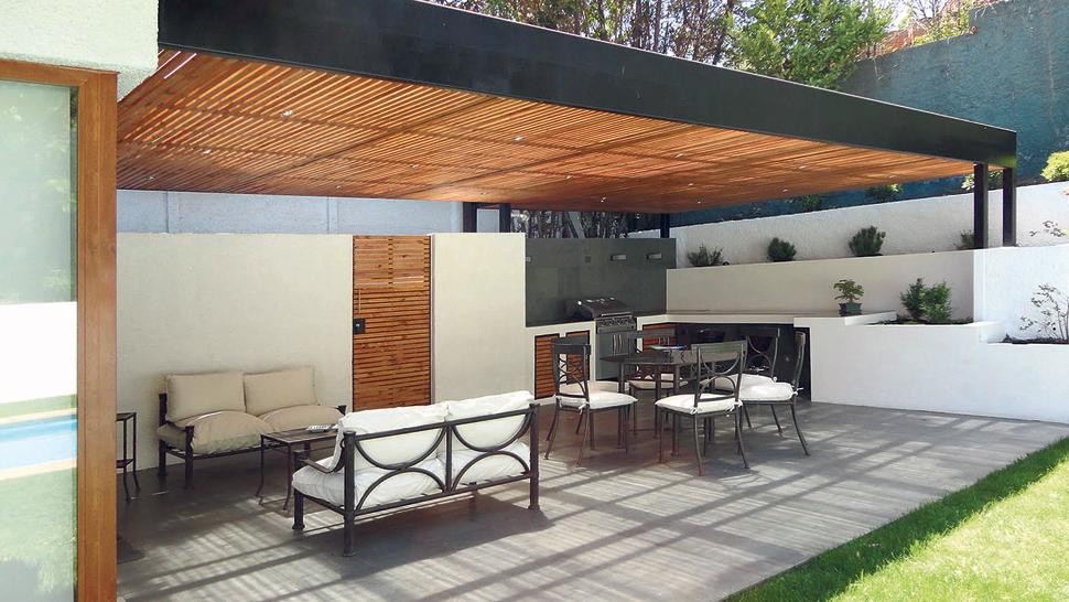 La iluminación general debe ser suficiente para reuniones nocturnas, mientras que la iluminación puntual en la parrilla o el horno es clave para un uso seguro y práctico. Las luces cálidas ayudan a crear un ambiente más acogedor.