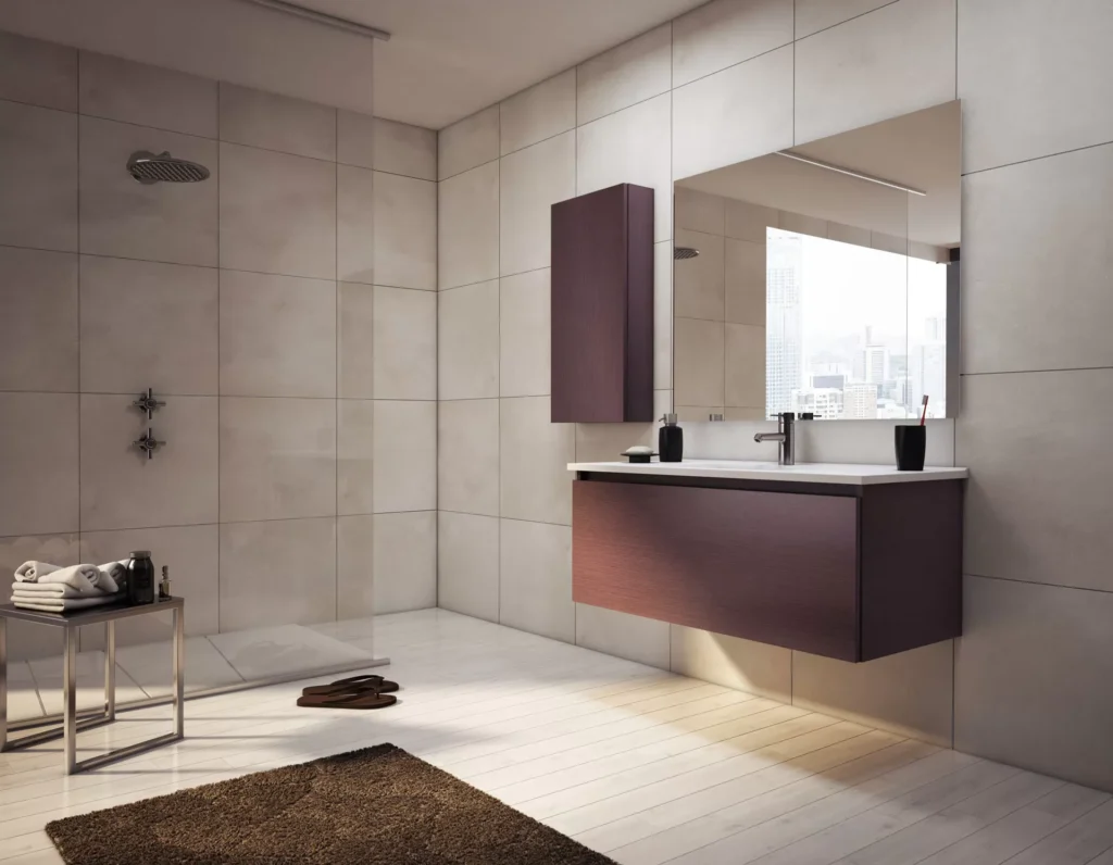 Para baños, la marca desarrolla vanitorys, espejos, cajoneras y muebles auxiliares con estilos que van desde lo minimalista hasta lo contemporáneo. Las superficies resistentes a la humedad, los sistemas de apertura suaves y la variedad de tamaños permiten adaptarlos a baños pequeños, medianos o amplios.